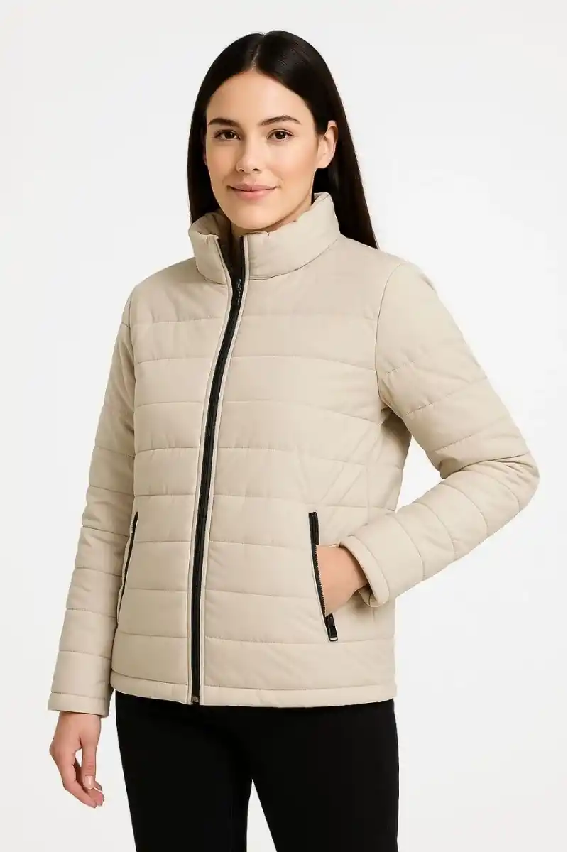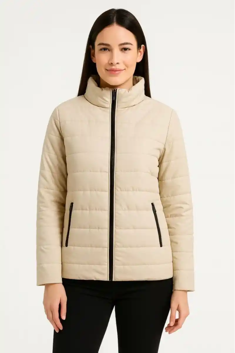 Kadın Bomber Mont Ceket – Su İtici Kumaş, Kapitone Astarlı, Fermuarlı, Kışlık - Bej