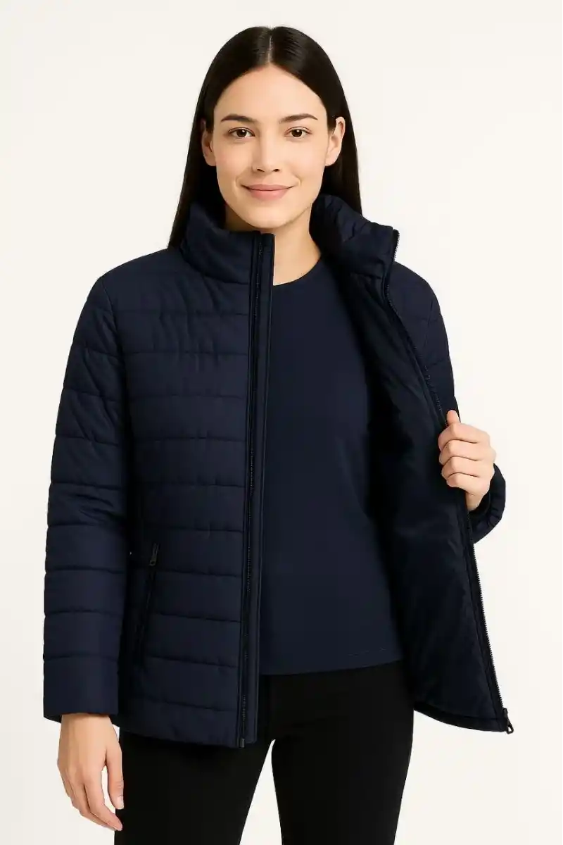 Kadın Bomber Mont Ceket – Su İtici Kumaş, Kapitone Astarlı, Fermuarlı, Kışlık - Lacivert
