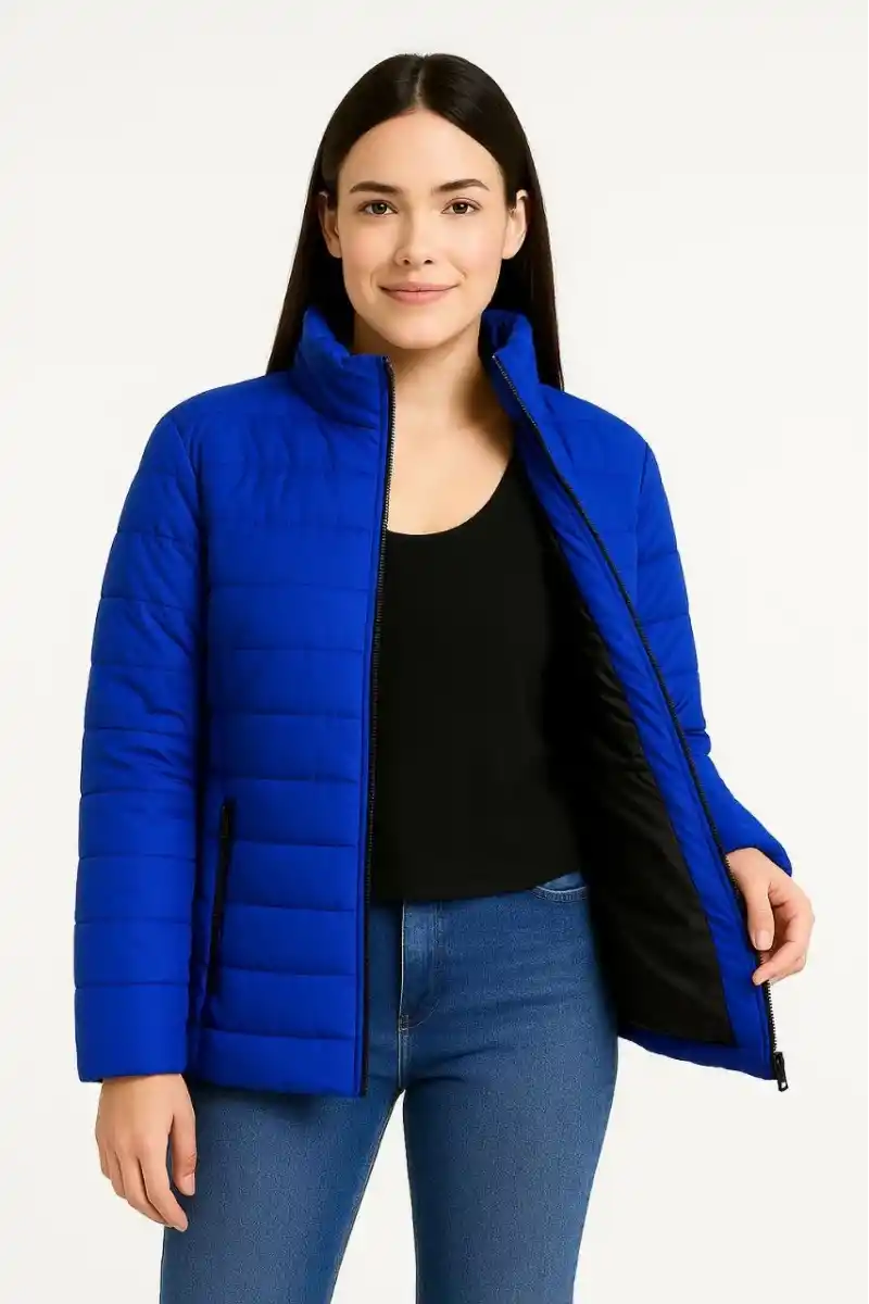 Kadın Bomber Mont Ceket – Su İtici Kumaş, Kapitone Astarlı, Fermuarlı, Kışlık - Saks Mavisi
