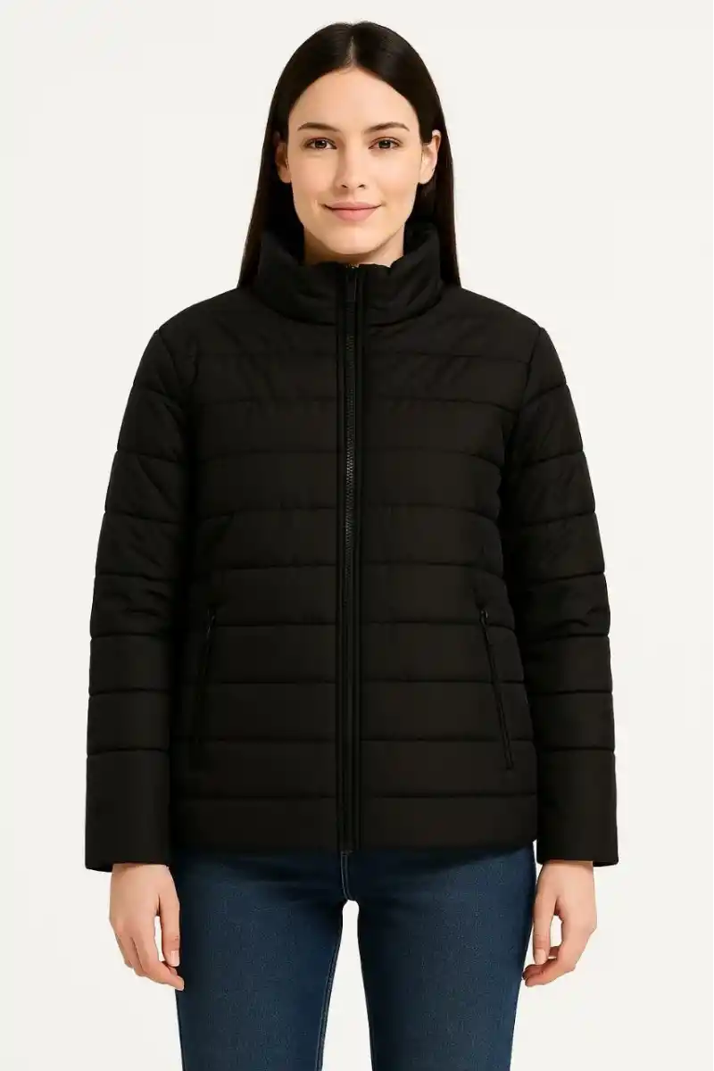 Kadın Bomber Mont Ceket – Su İtici Kumaş, Kapitone Astarlı, Fermuarlı, Kışlık - Siyah