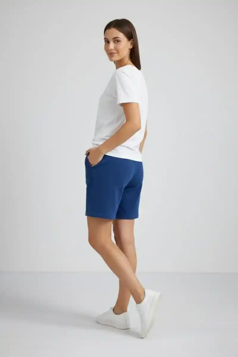 Kadın Dokuma otoban Şort Beli Lastikli Bağcıklı Cepli Kesim Şort - İndigo