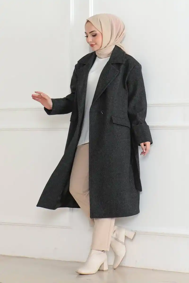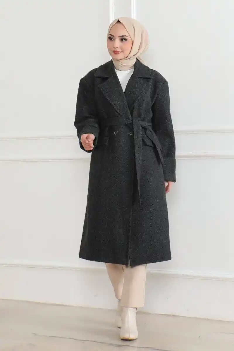 | Ürün açıklaması | Kış aylarında şıklığı ve sıcaklığı bir arada sunan bu uzun boy kaşe kaban, içi astarlı yapısıyla ekstra konfor sağlarken düğmeli tasarımıyla da modern bir görünüm sunar. %95 kaşe ve %5 akrilik kumaş karışımı ile dayanıklı ve sıcak tutan bu kaban, tesettür giyime uygun olarak tasarlanmıştır. Kruvaze yaka ve beldeki ayarlanabilir kuşak detayı ile vücut hatlarını zarifçe öne çıkarırken, öndeki düğme detayları sayesinde klasik bir şıklık katar. Geniş koleksiyon seçenekleriyle hem günlük hem de özel gün kombinlerinizi tamamlayacak bu kaban, kış gardırobunuzun vazgeçilmezi olacak. |