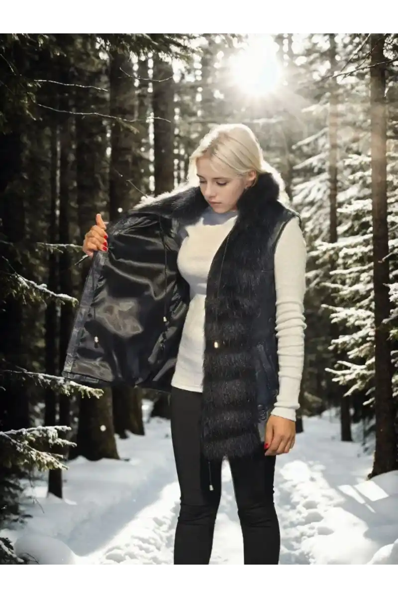 Kadın Kolsuz Fermuarlı Yelek - Lacivert