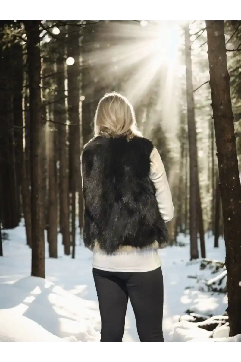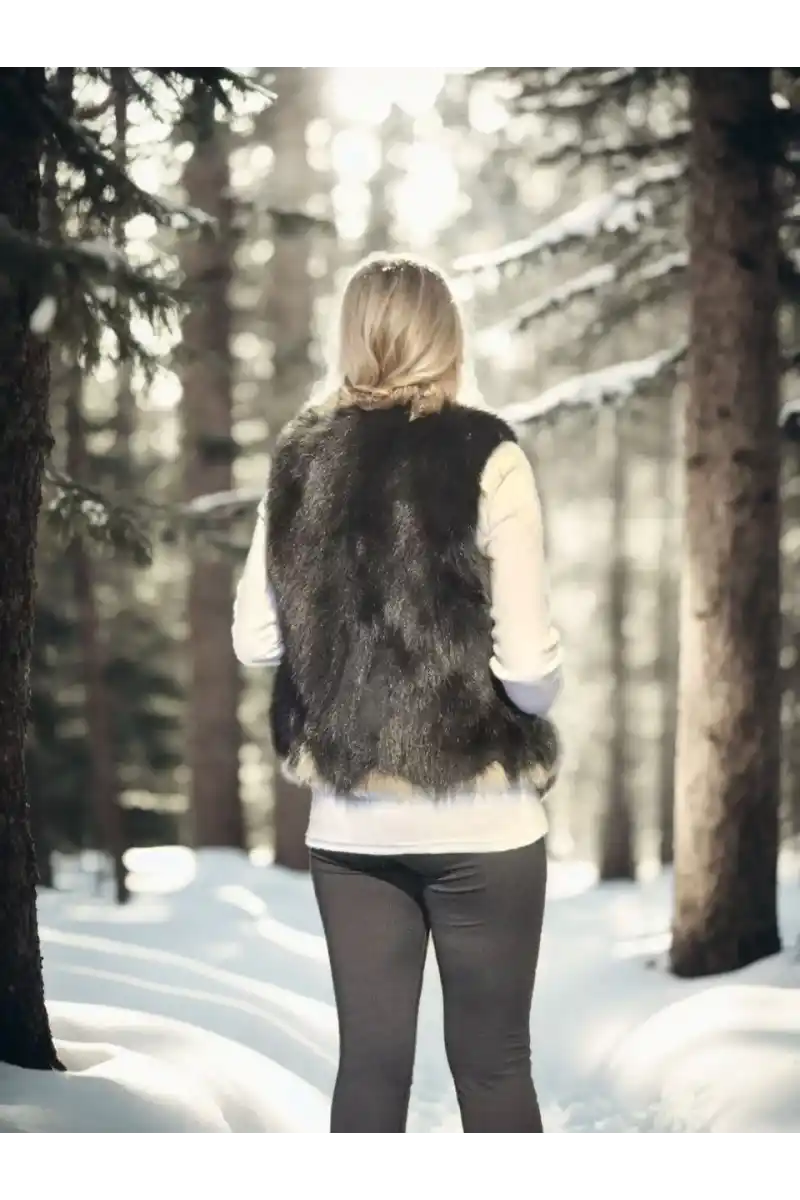 Kadın Kolsuz Fermuarlı Yelek - Siyah