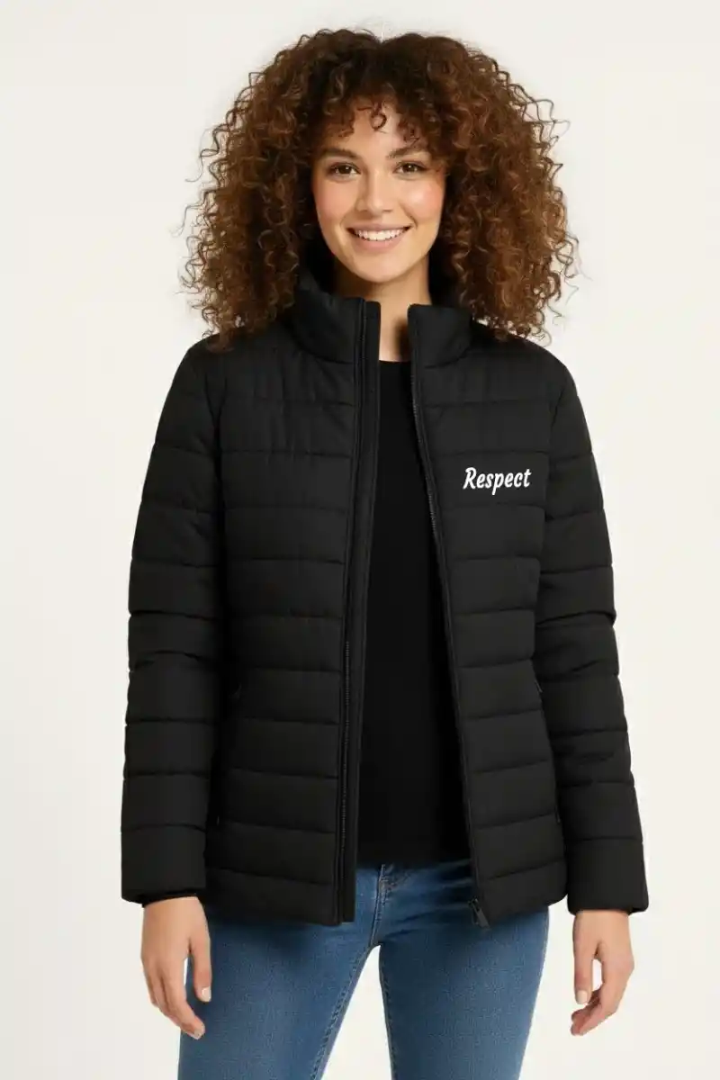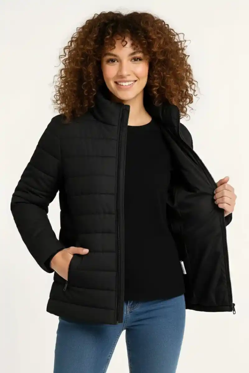 Kadın Mikro Su İtici Kapitone Baskılı Astarlı Fermuarlı Bomber Mont - Siyah