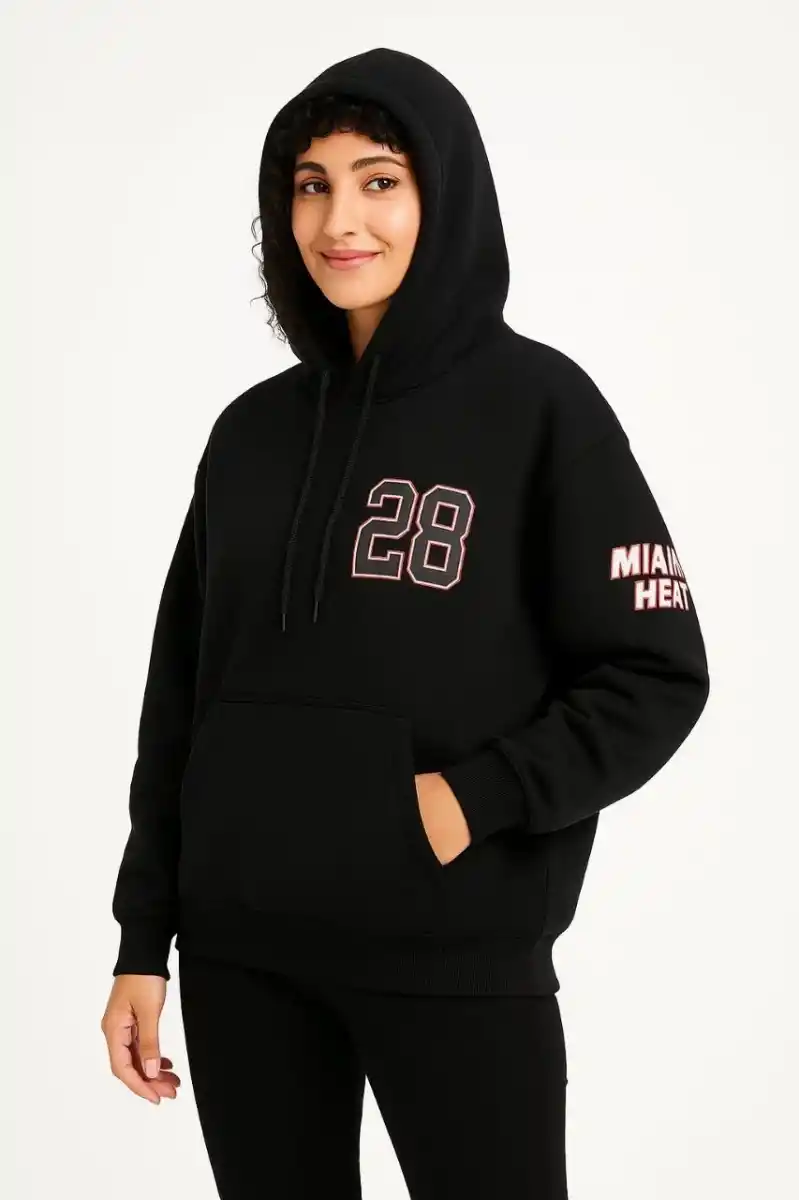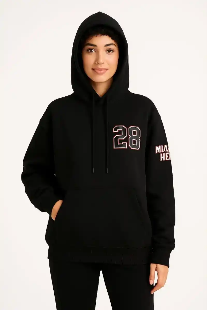 Kadın Üç İplik Kapüşonlu Ön ve Arka Baskılı SweatShirt hoodie - Siyah