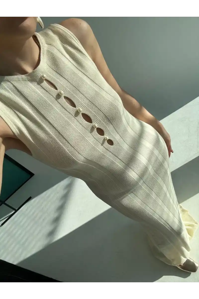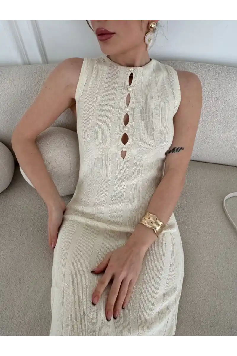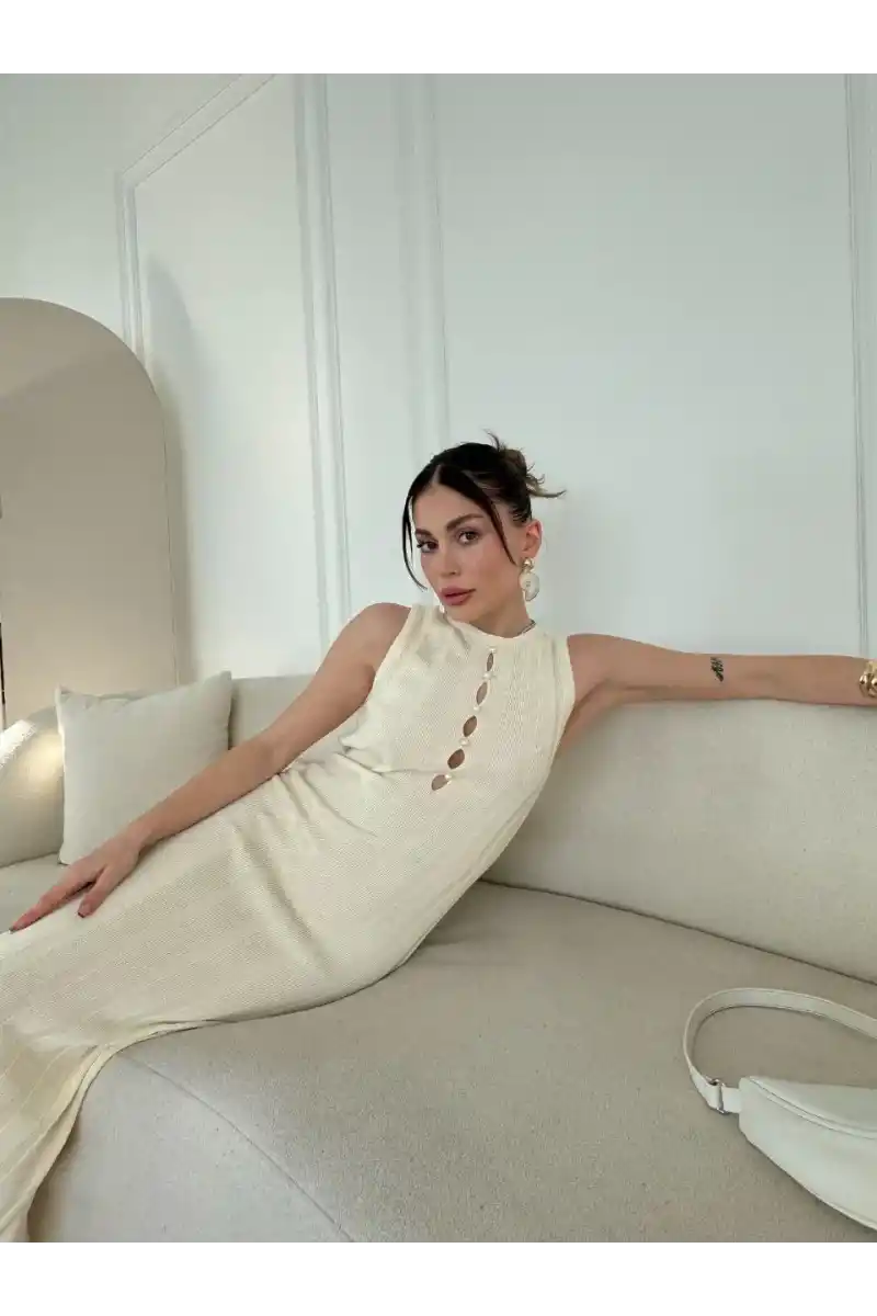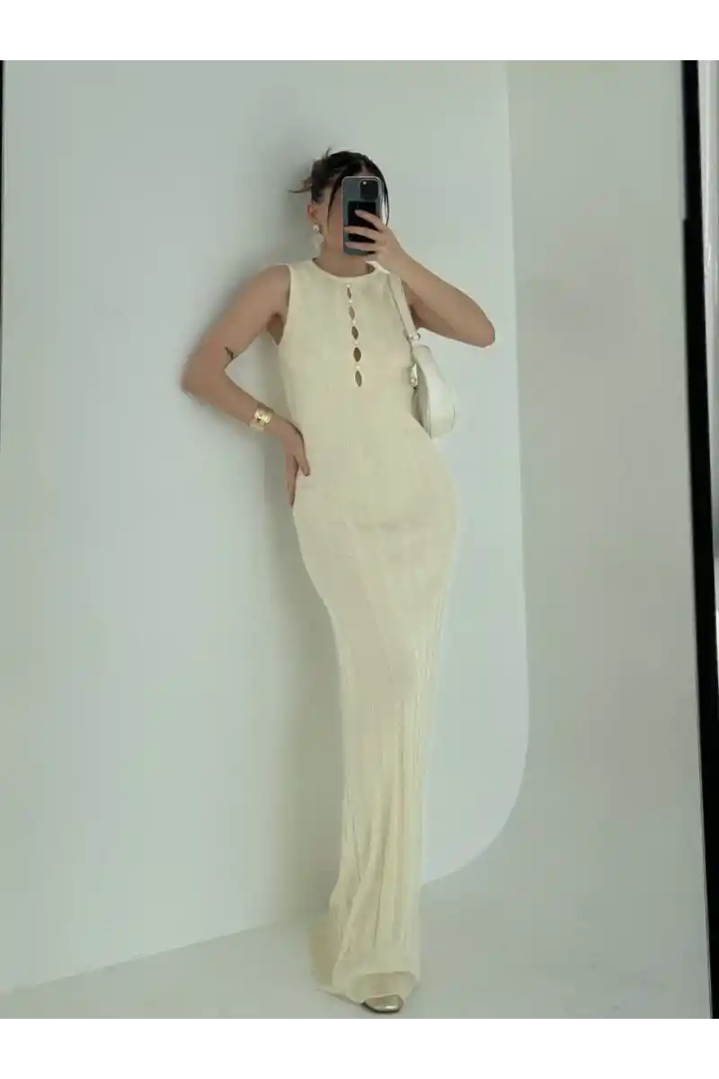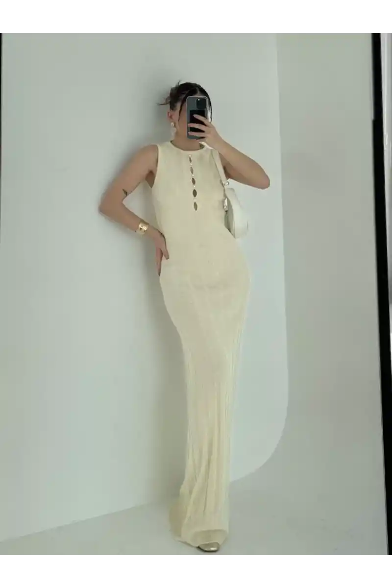 | Detay | Kollsuz uzun Kalın Fitiili Elbise |
