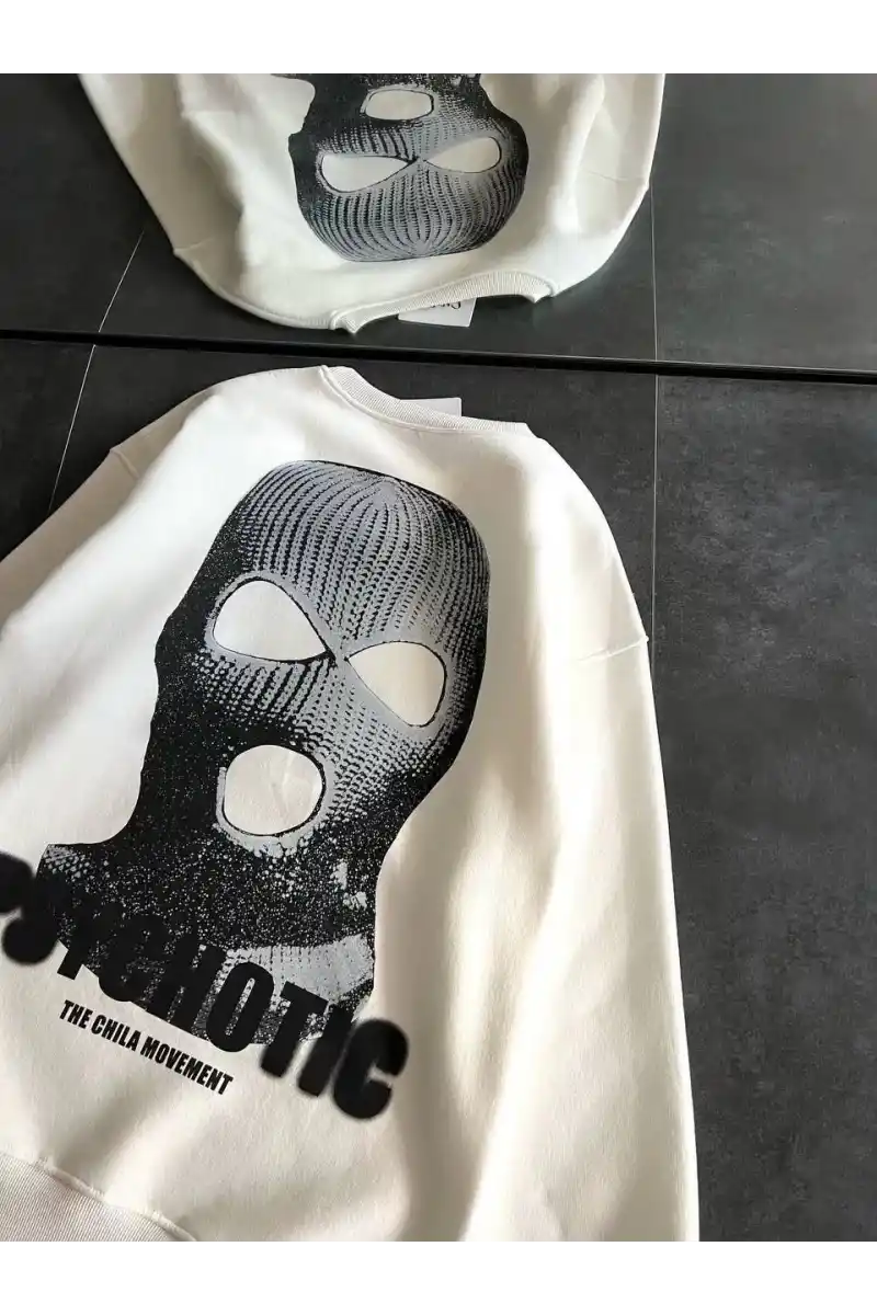 Kışlık Bisiklet Yaka Baskılı SweatShirt - Beyaz