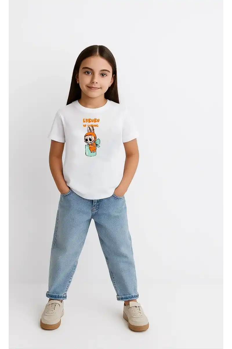 Kız Labubu Çocuk Baskılı T-Shirt - Beyaz