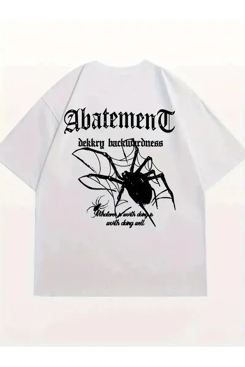 Örümcek Ağı Desenli Baskılı Oversize Bisiklet Yaka T-shirt - Beyaz