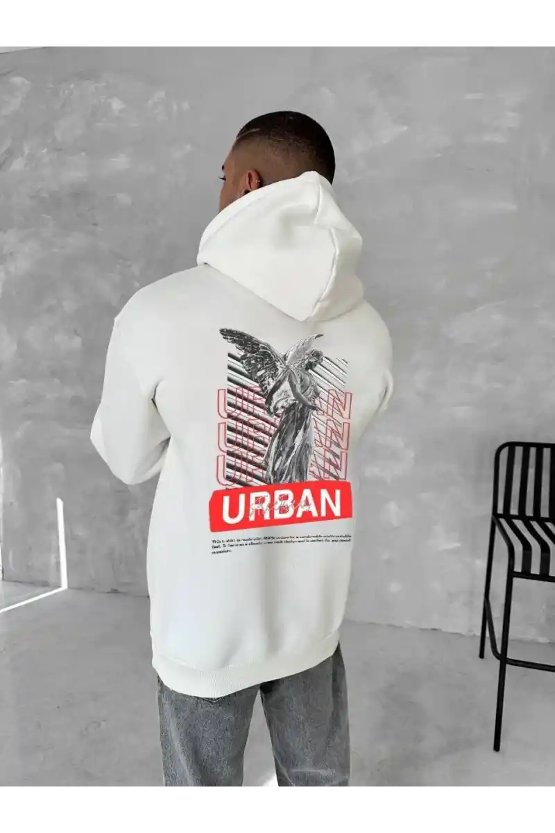 Oversize Üç İplik Kapüşonlu SweatShirt - Beyaz