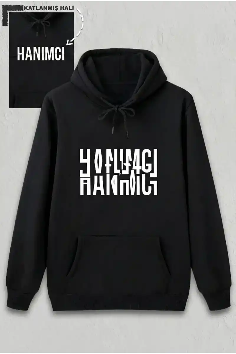 Sevgililer Günü Özel Kapüşonlu Hanımcı Baskılı Oversize Sweatshirt - Siyah