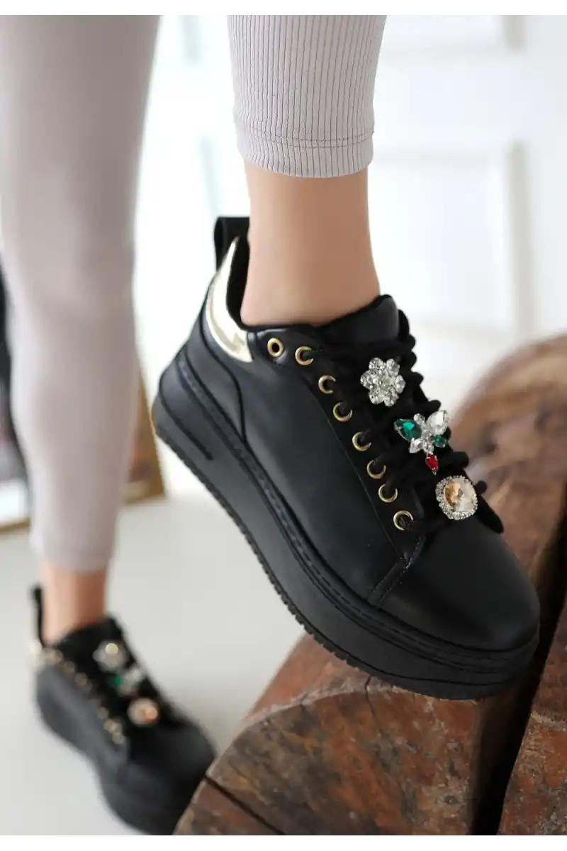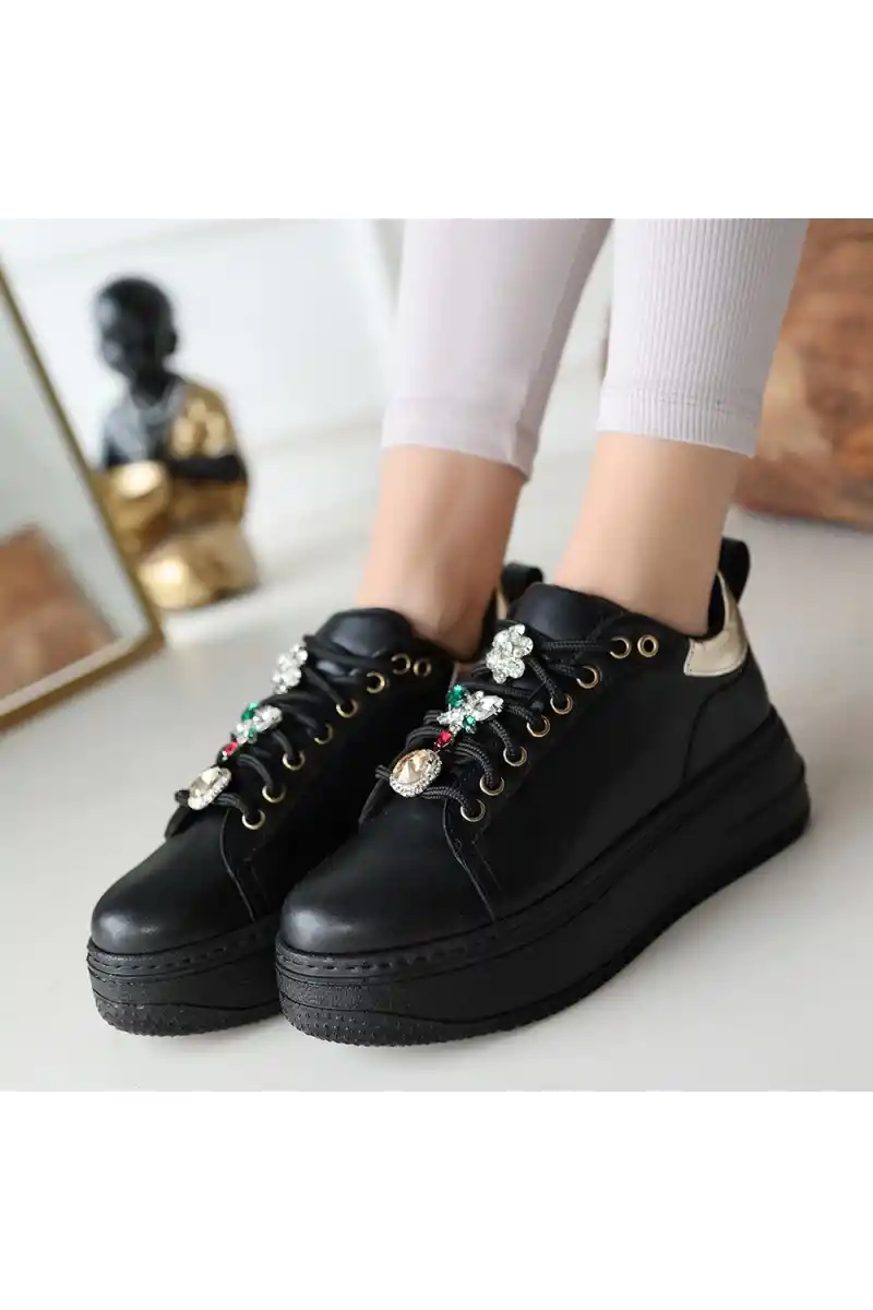 Detay: Bağcıklı Dolgu Topuklu Gold Detaylı Spor