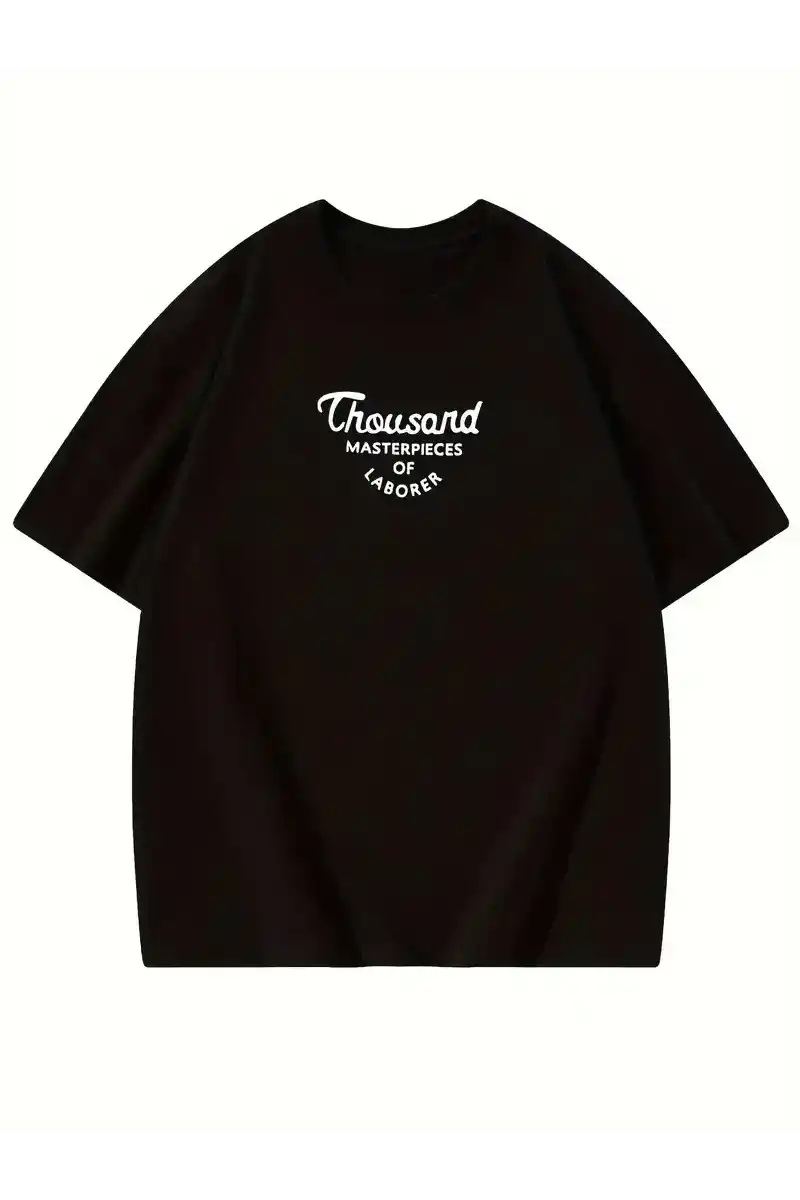 Thousand Ön Arka Baskılı Oversize Bisiklet Yaka T-shirt - Siyah