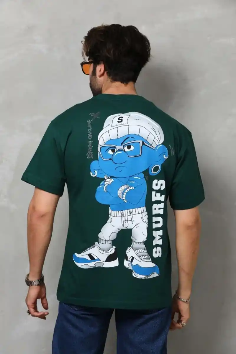 Unisex Basic Bisiklet Yaka Oversize T-Shirt - Yeşil