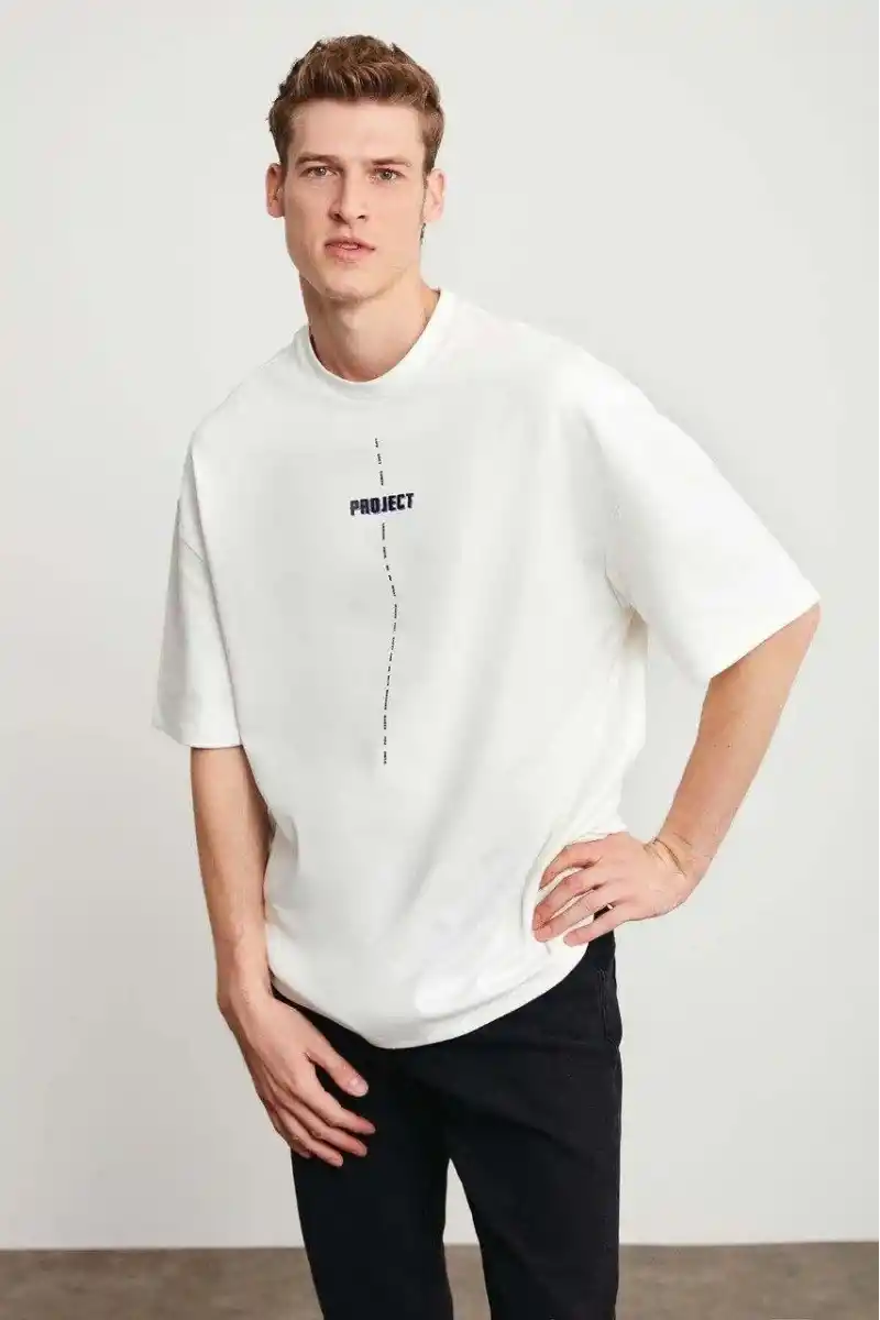 Unisex Baskılı Oversize T-Shirt - Beyaz