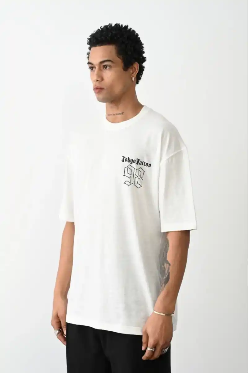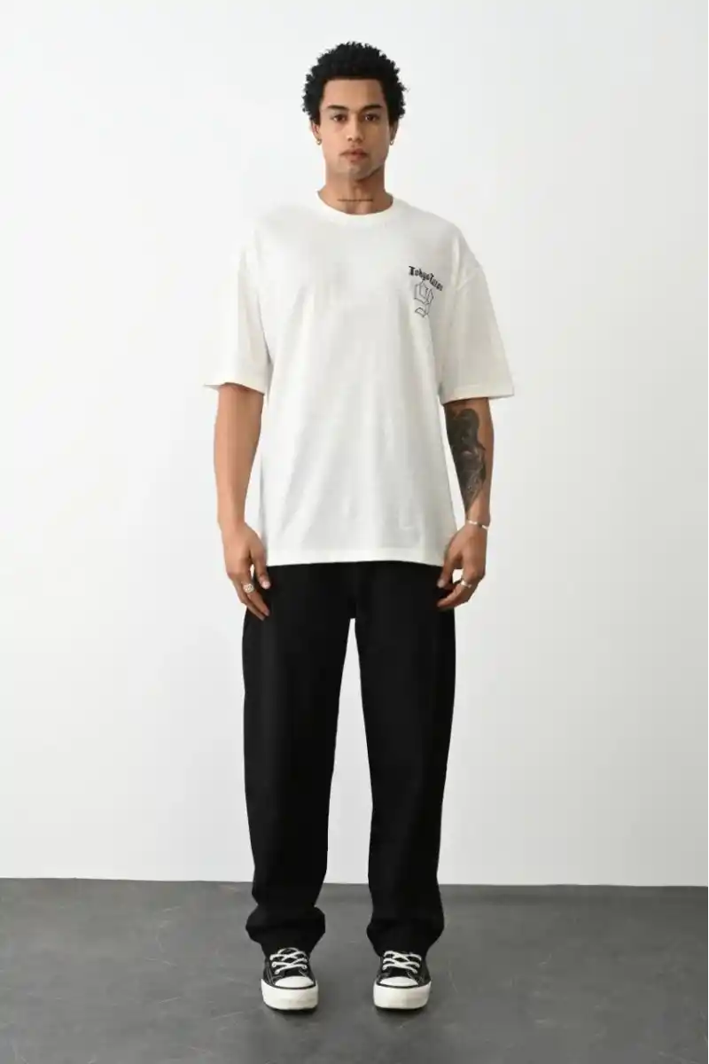 Unisex Baskılı Oversize T-Shirt - Beyaz