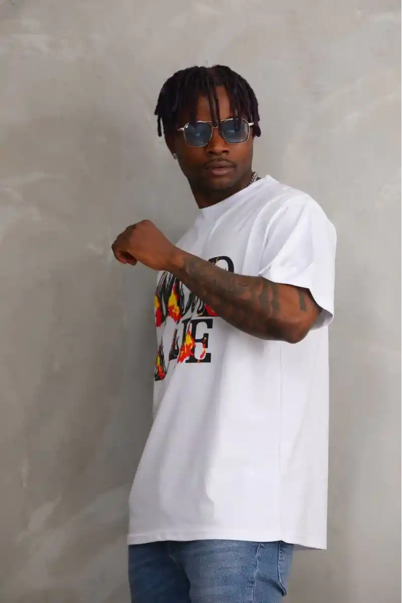 Unisex Baskılı Oversize T-Shirt - Beyaz