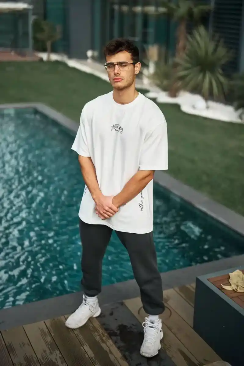 Unisex Baskılı Oversize T-Shirt - Beyaz