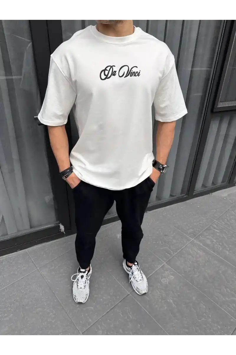 Unisex Baskılı Oversize T-Shirt - Beyaz