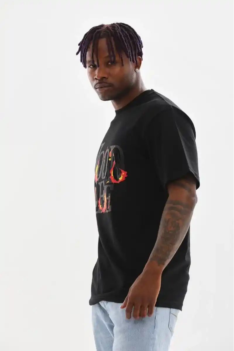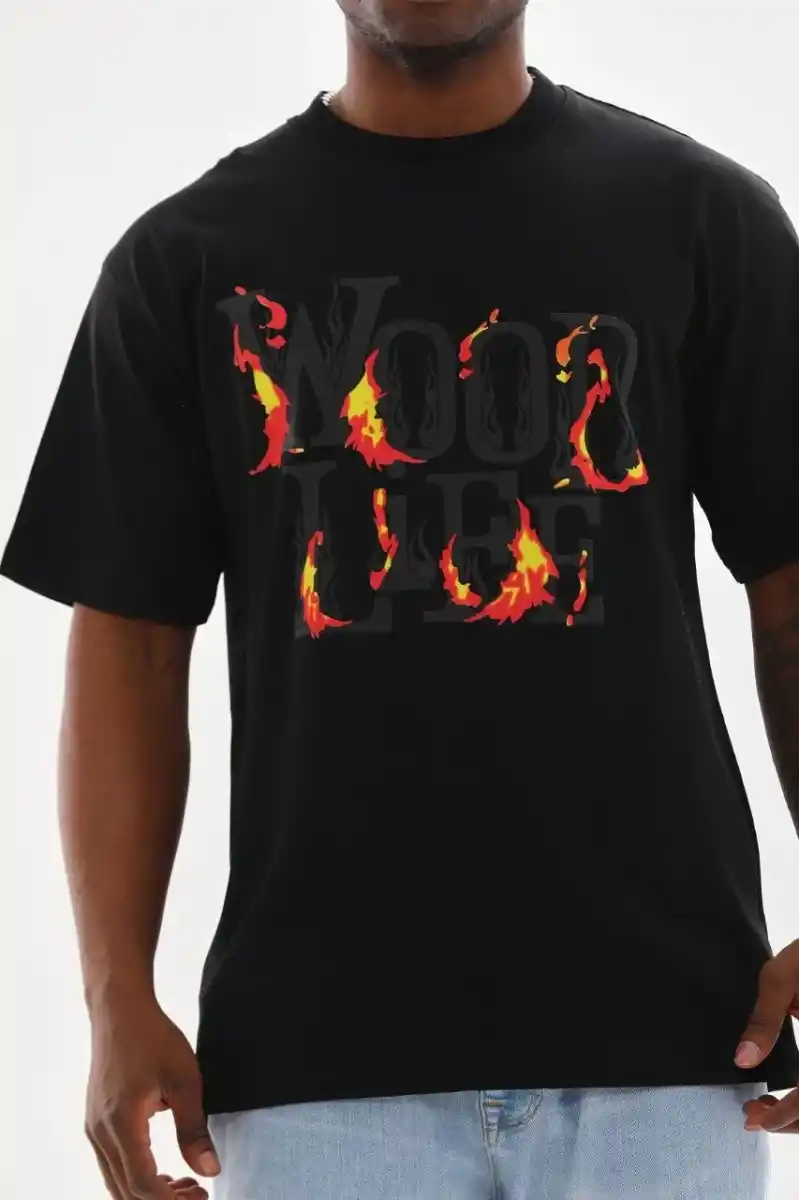 Unisex Baskılı Oversize T-Shirt - Siyah