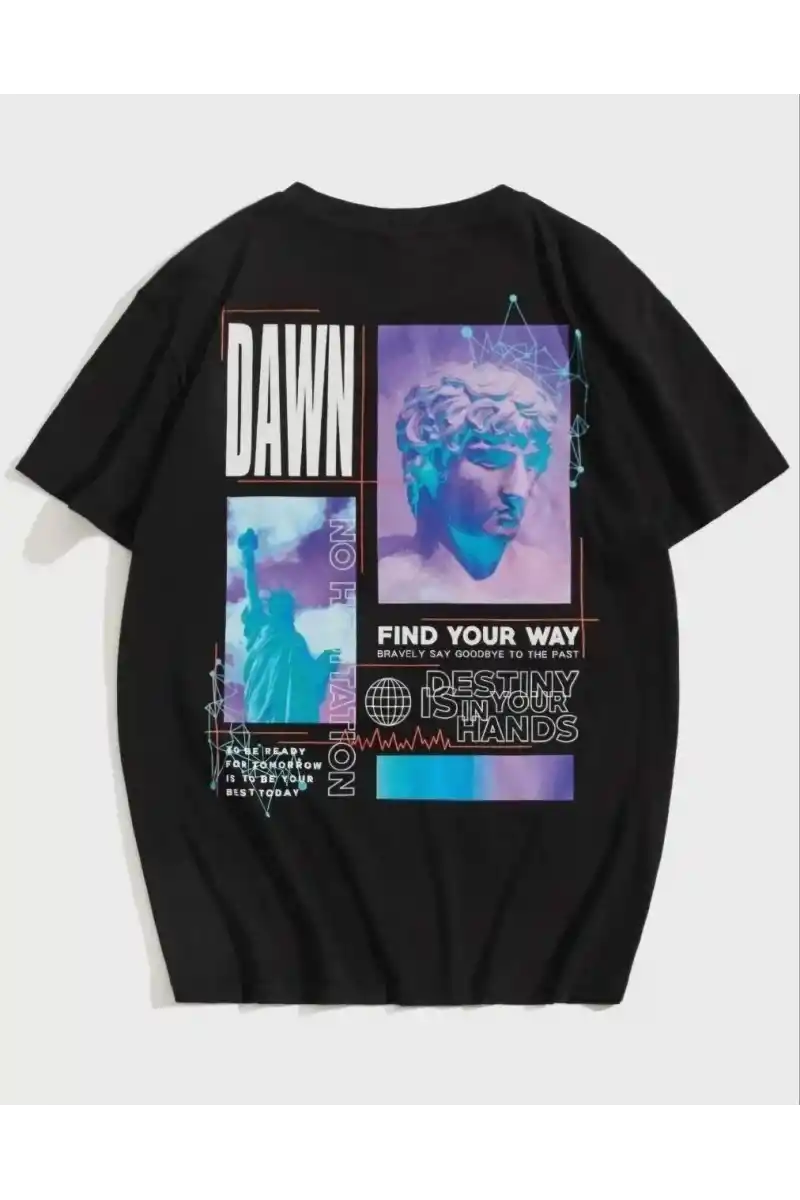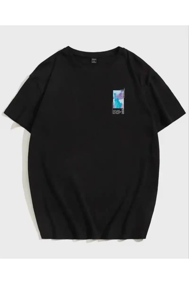 Unisex Baskılı Oversize T-Shirt - Siyah
