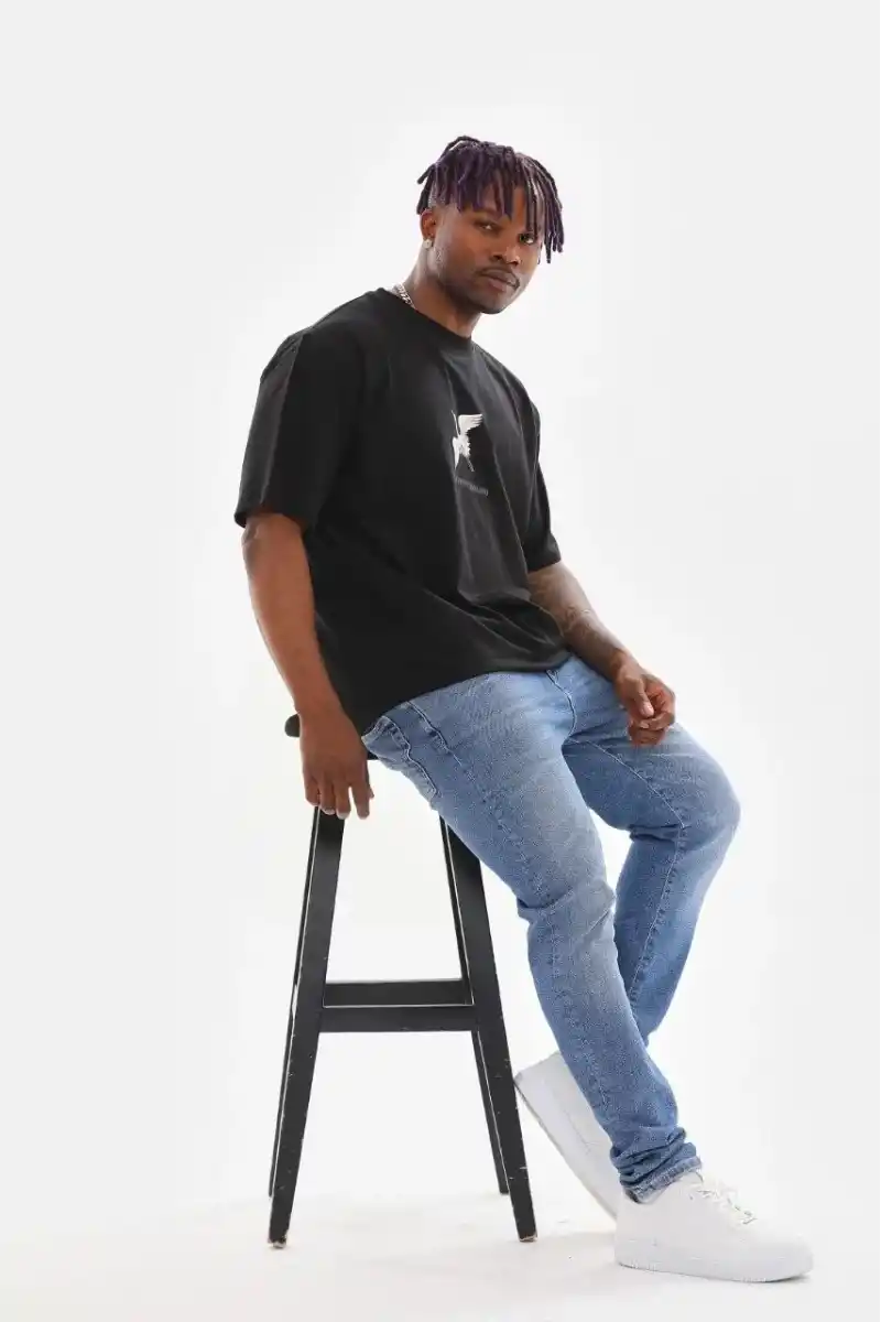 Unisex Baskılı Oversize T-Shirt - Siyah