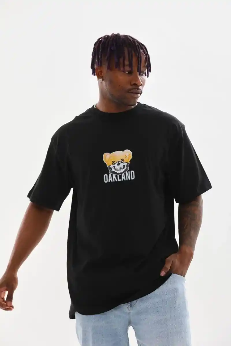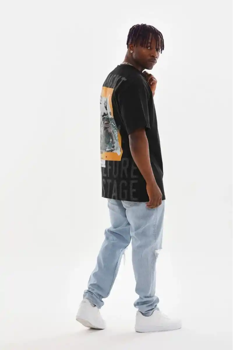Unisex Baskılı Oversize T-Shirt - Siyah