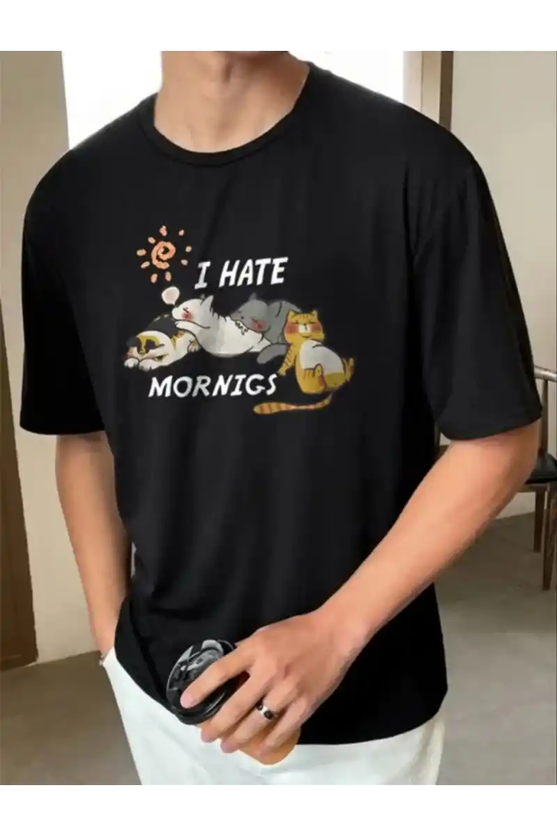 Unisex Baskılı Oversize T-Shirt - Siyah