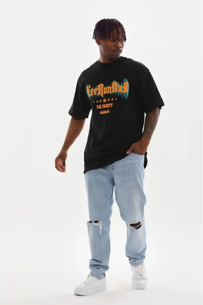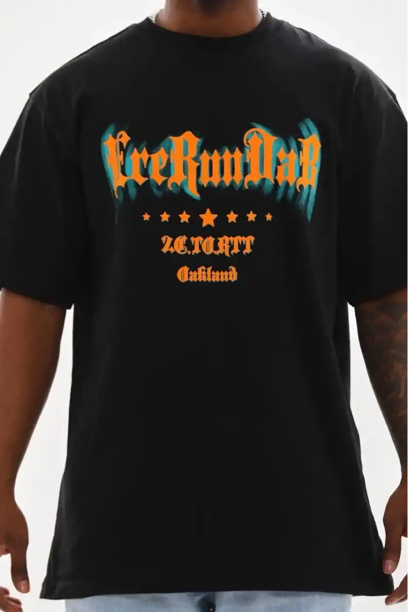 Erkek Baskılı T-Shirt Kısa Kol Bisiklet Yaka Rahat Kalıp Tişört - Siyah