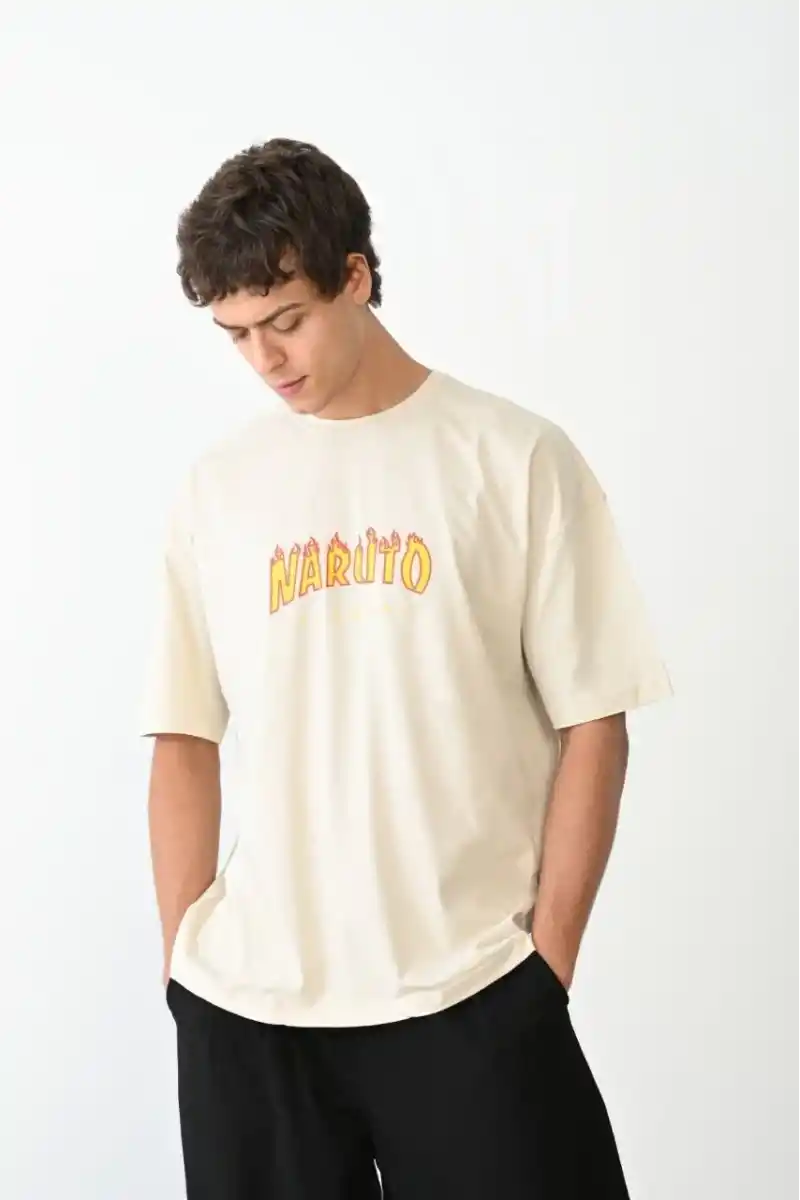 ERKEK Bisiklet Yaka Baskılı Oversize T-Shirt - Beyaz