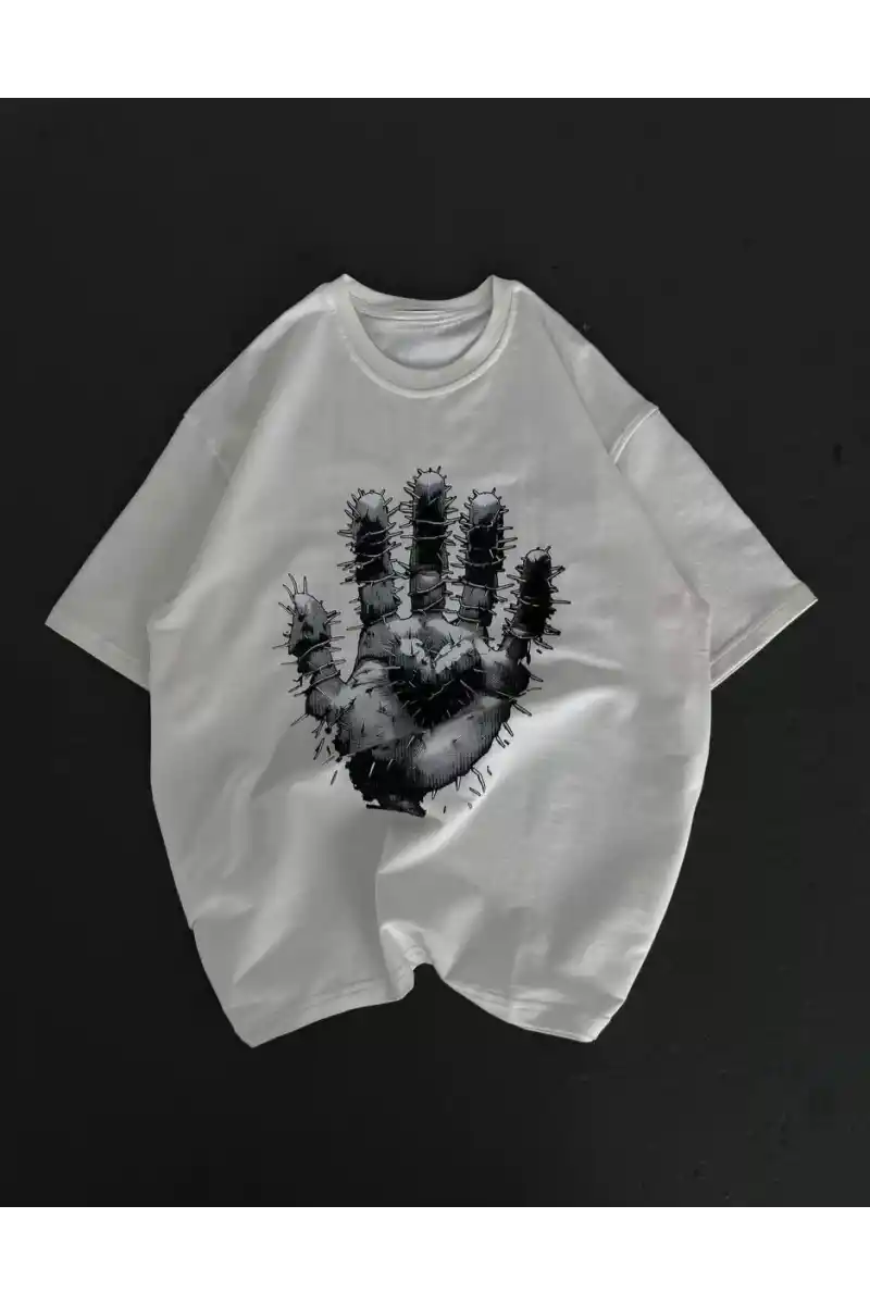 Unisex Bisiklet Yaka Baskılı Oversize T-Shirt - Beyaz