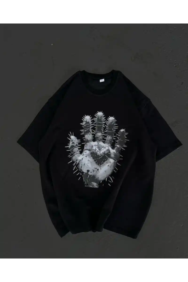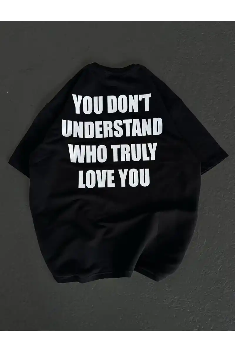 Kadın Bisiklet Yaka Baskılı Oversize T-Shirt - Siyah