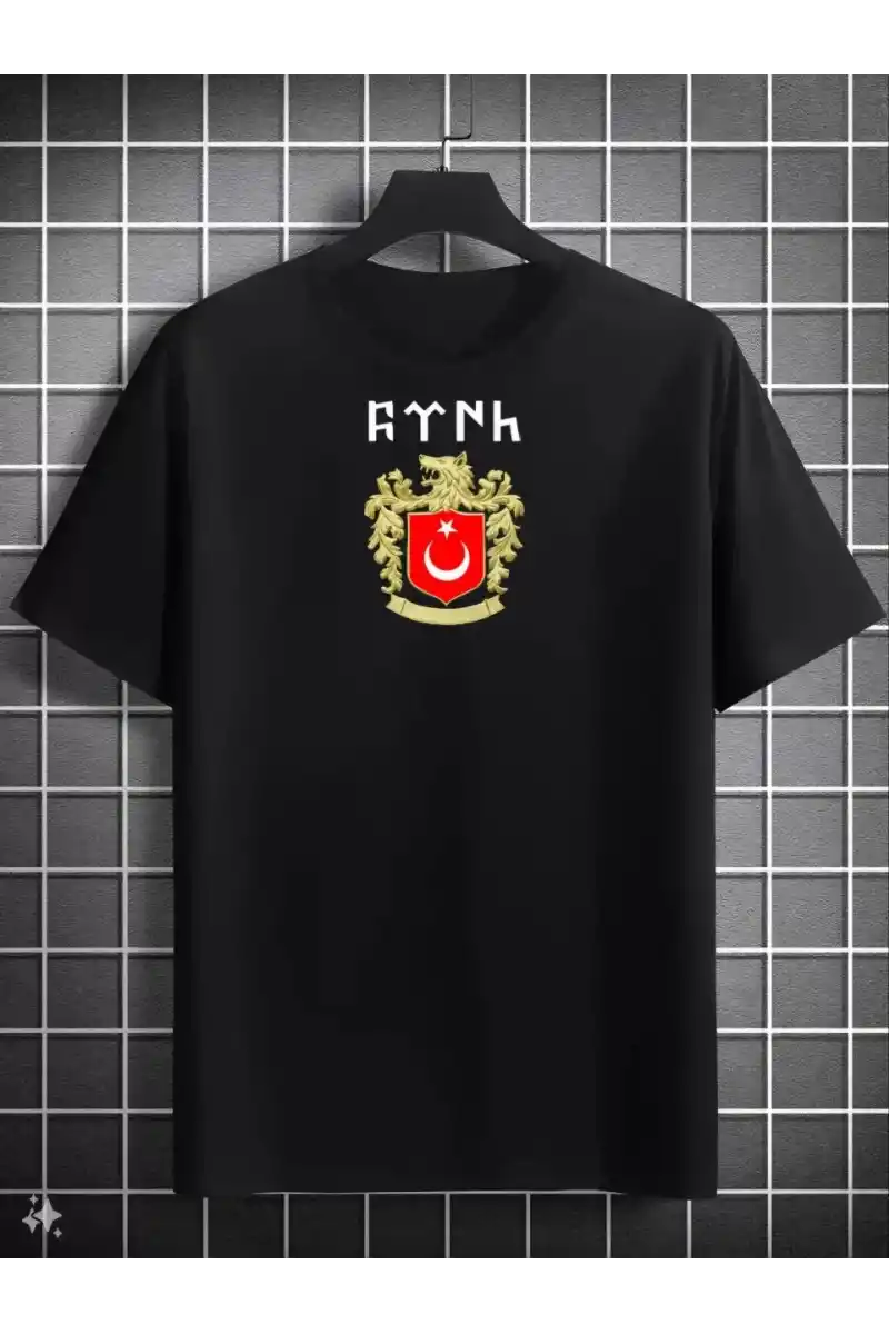 Unisex Bisiklet Yaka Baskılı Oversize T-Shirt - Siyah