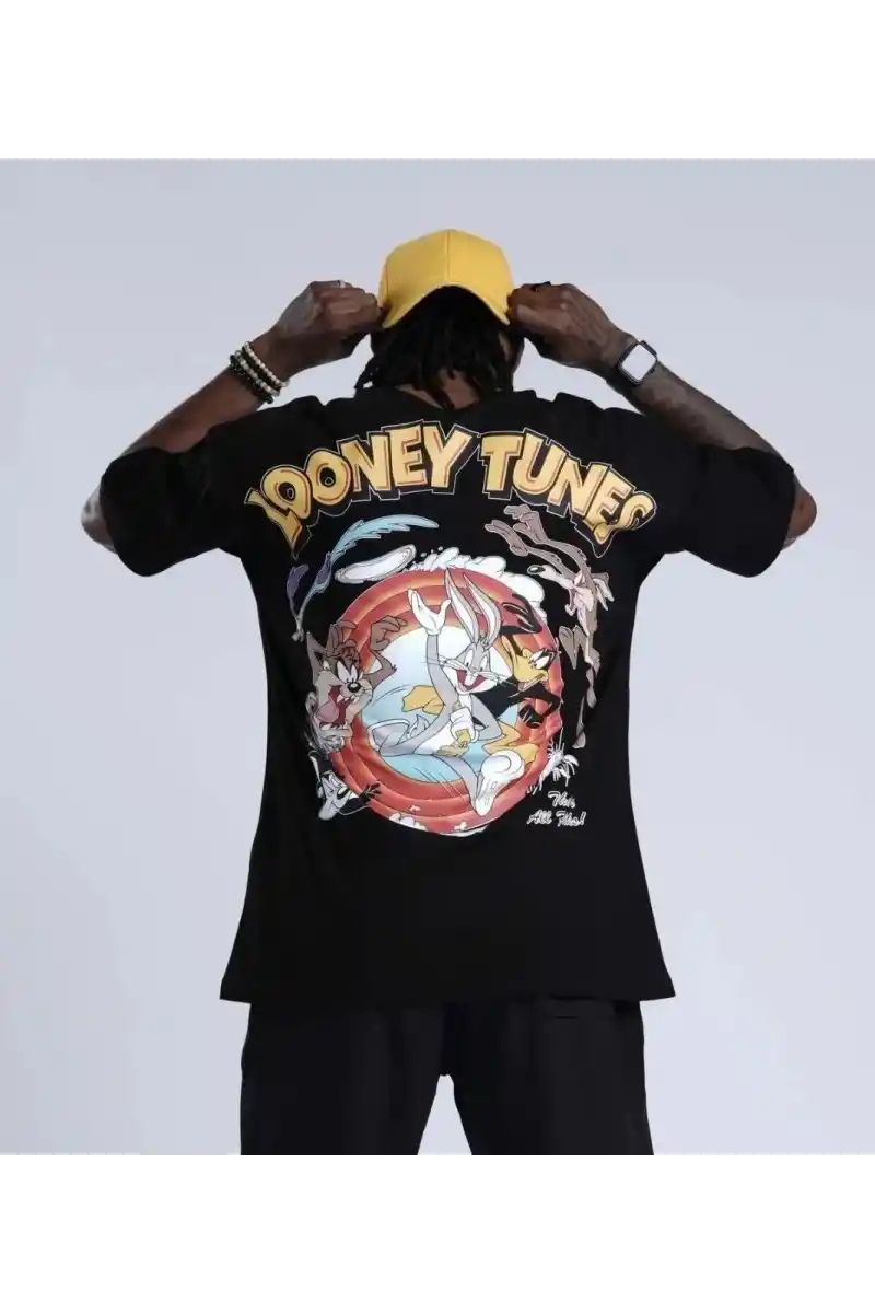 Bisiklet Yaka Baskılı Oversize T-Shirt - Siyah