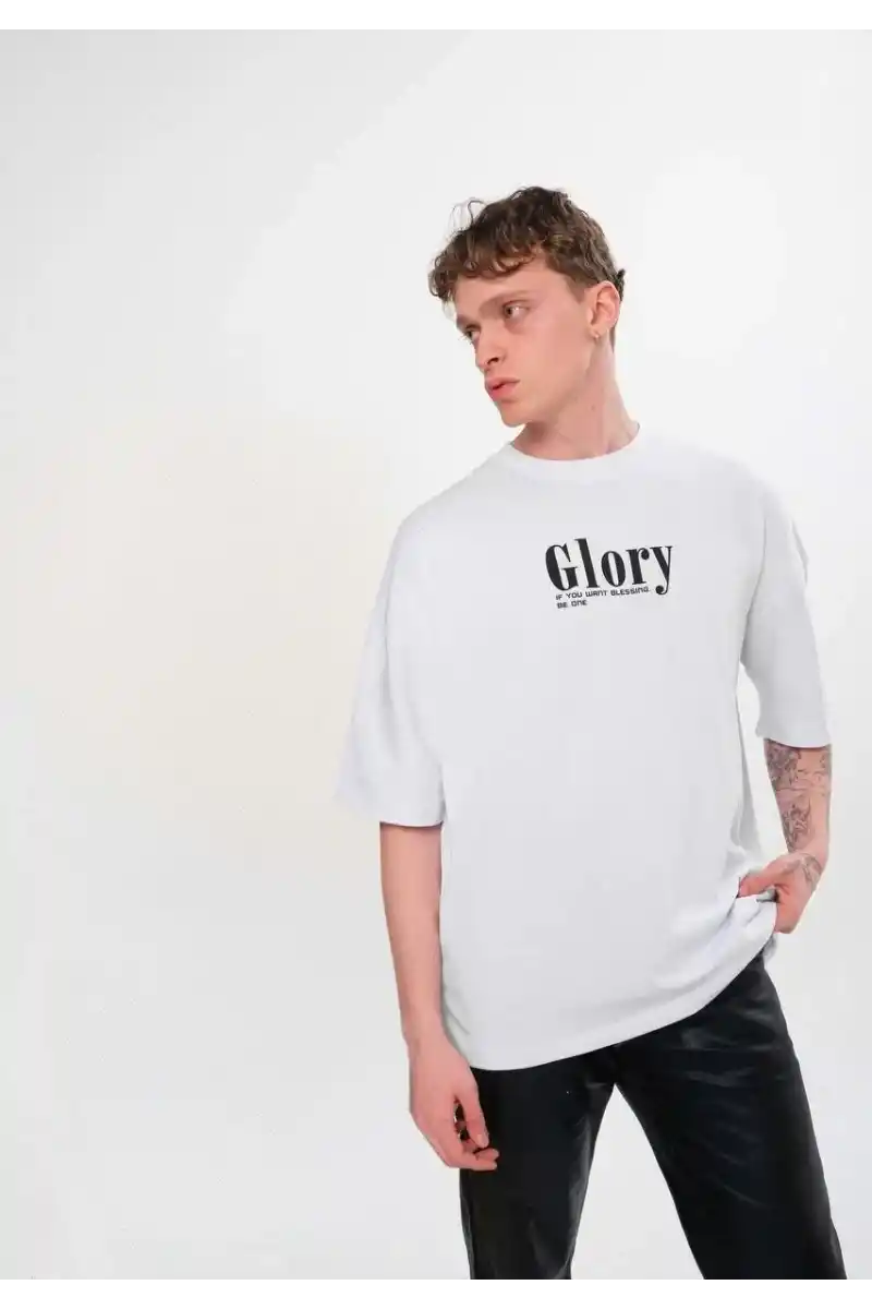 Unisex Bisiklet Yaka Baskılı Oversize T-Shirt - Siyah