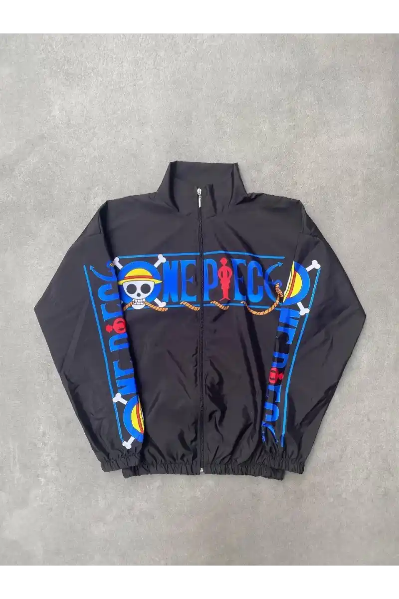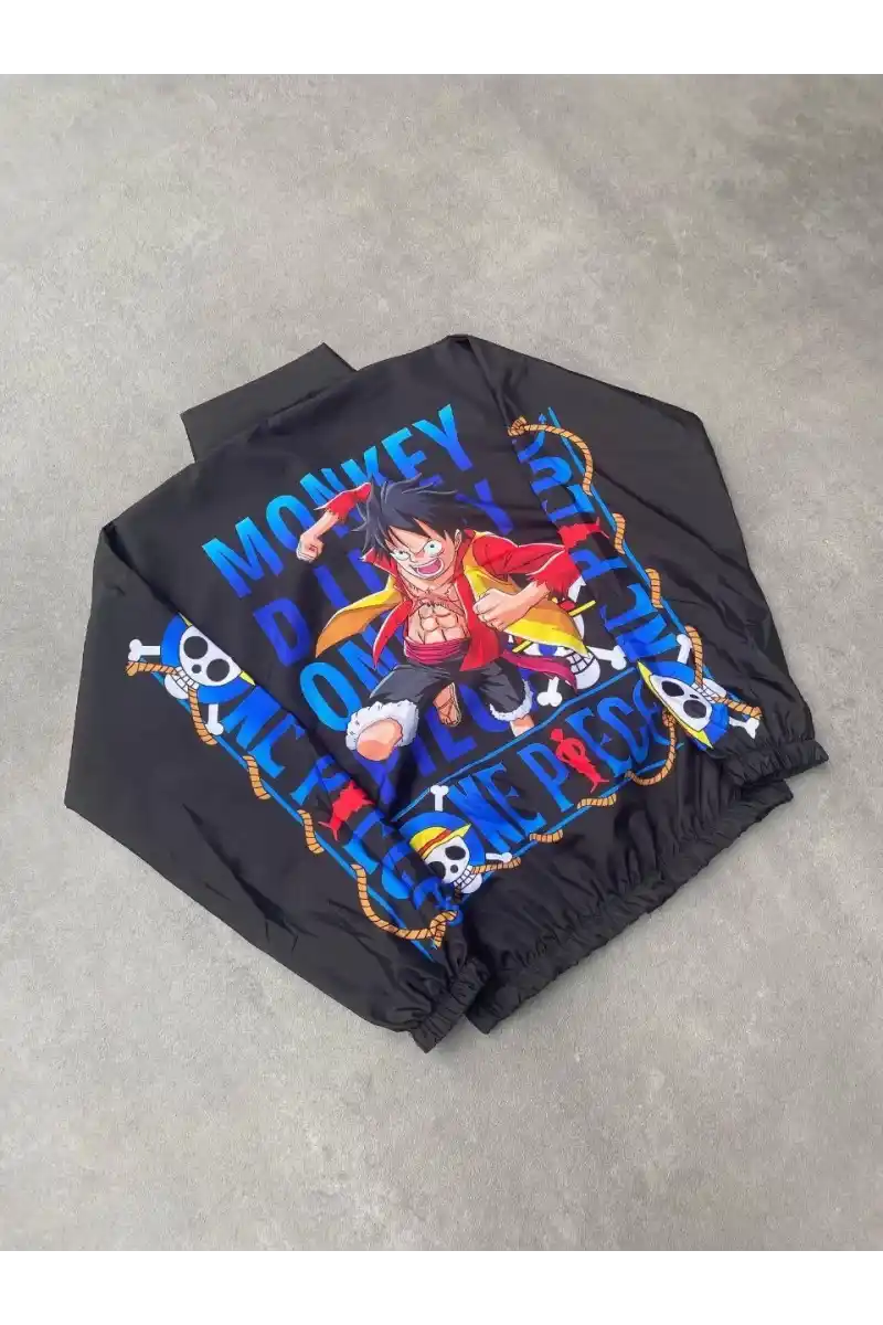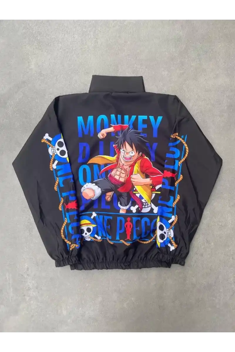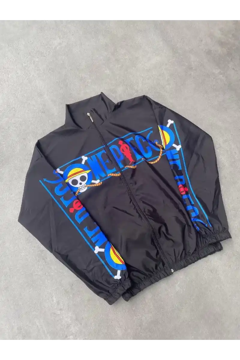 Unisex Fermuarlı Dijital Baskılı Rüzgarlik - Siyah