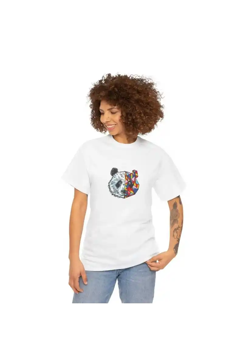 Kadın Bisiklet Yaka Baskılı T-Shirt - Beyaz