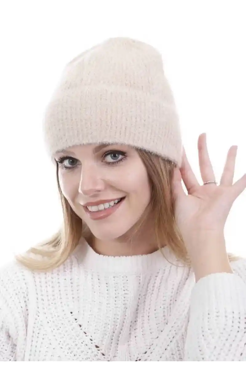 Unisex Tam Kalıp İnce Sakallı Triko Bere - Pudra
