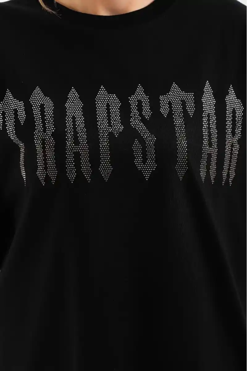 Unisex Taş Desenli Oversize T-Shirt - Siyah