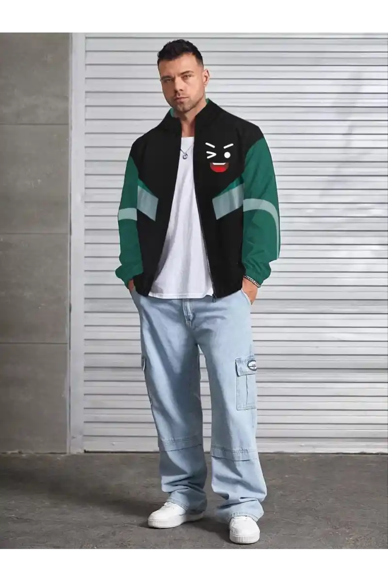 Unisex Uzun Kollu Paraşüt Kumaş Rüzgarlik - Siyah