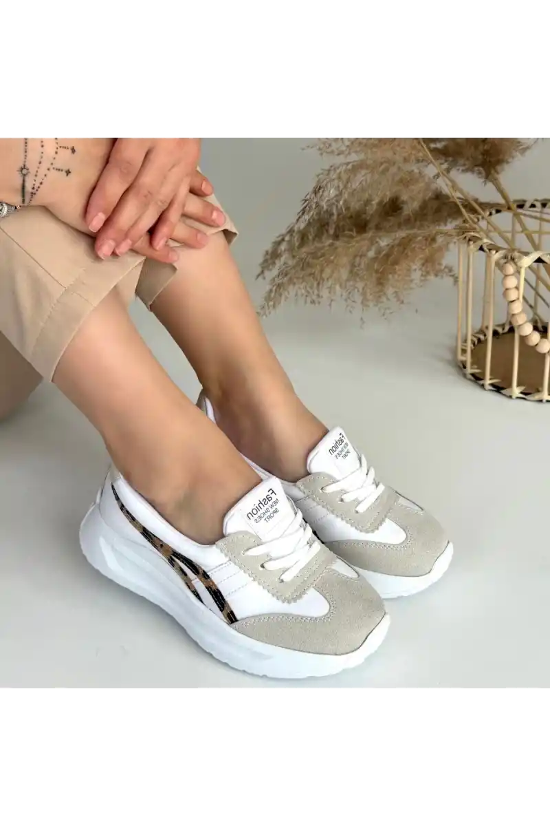 Zitta Beyaz Cilt Leopar Detaylı Spor Ayakkabı - GC